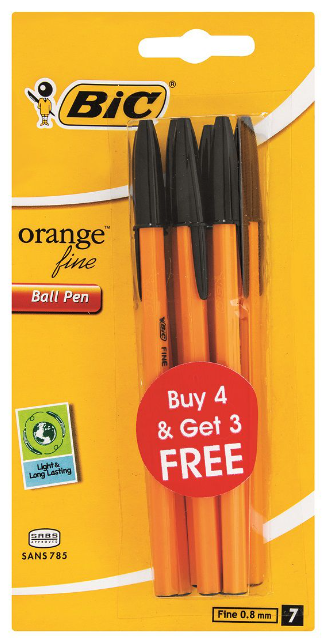BIC Orange Ball Point Pen – Black – Pack of 4 +3